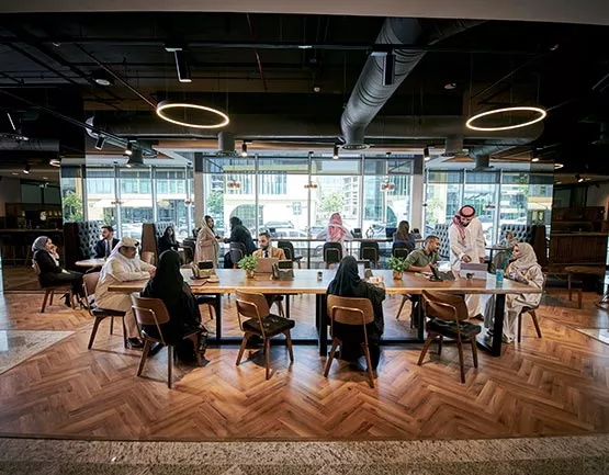 الوصول إلى قاعات اجتماعات مجهزة بالكامل ومساحات عمل مشتركة عند الطلب.